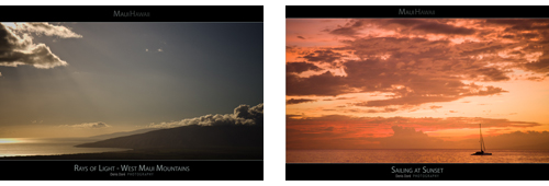 Are you looking for a quality souvenir to bring a bit of Maui beauty home? I have created a series of Exclusive High-Quality Maui Hawaii Posters to keep the magic alive while away from the island. Here are the 4 Maui Hawaii Posters of the month. This month, I created a new 'Sunset Series' and added one more poster to the 'Surf Series' and the 'Haleakala Series'. Pick the one you prefer or grab them all! Here's a 20% Summer Discount available until August 15th. Simply enter the following code when you check out. PROMO CODE: KSYZBR Click on the photographs to enlarge and fully customize your poster: stantard print, framed, canvas or greeting cards. It's up to you! Maui Hawaii Sunset Posters #1 and #2